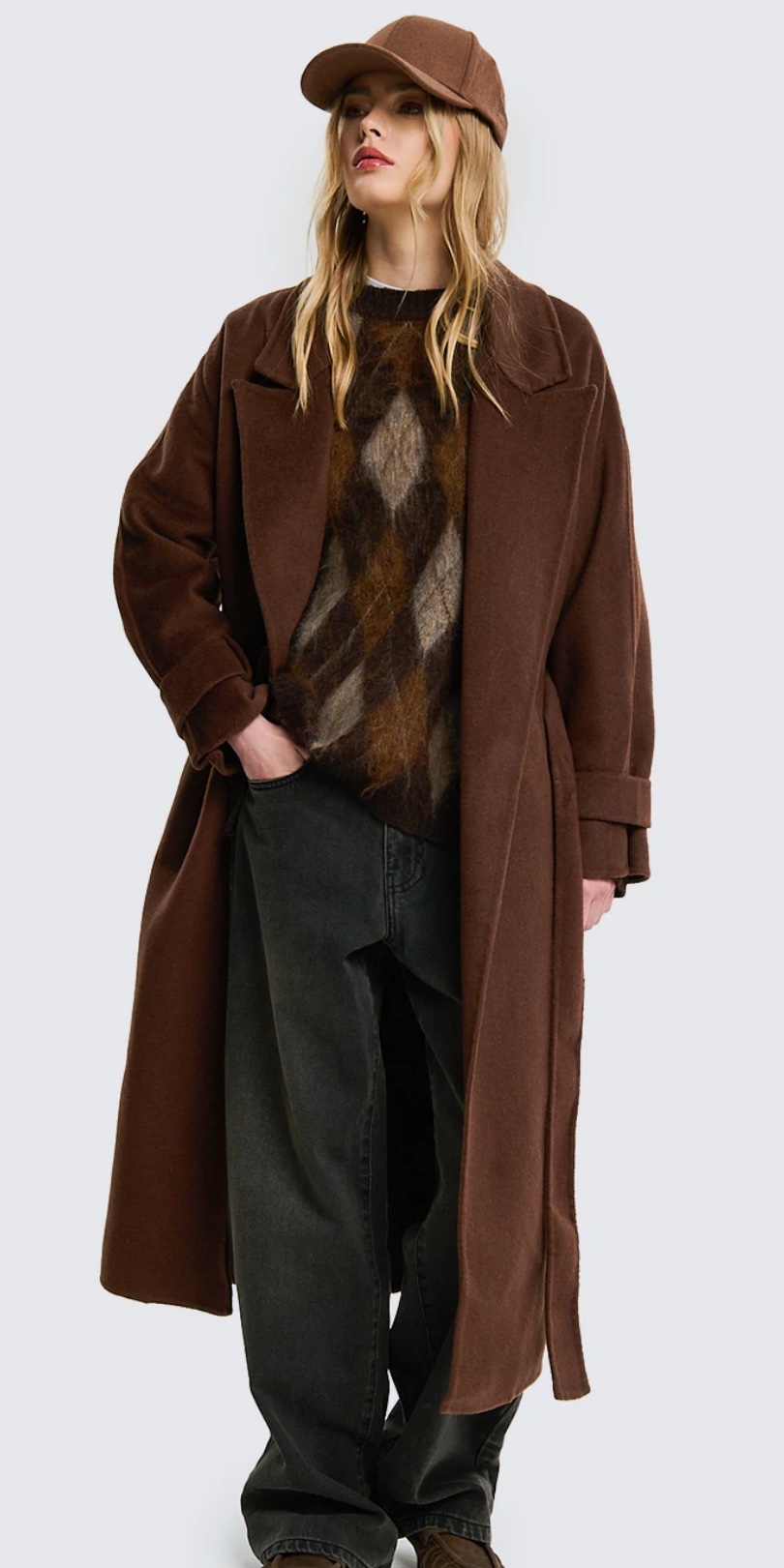 Cappotto modello over con cintura in vita amovibile, in misto lana.