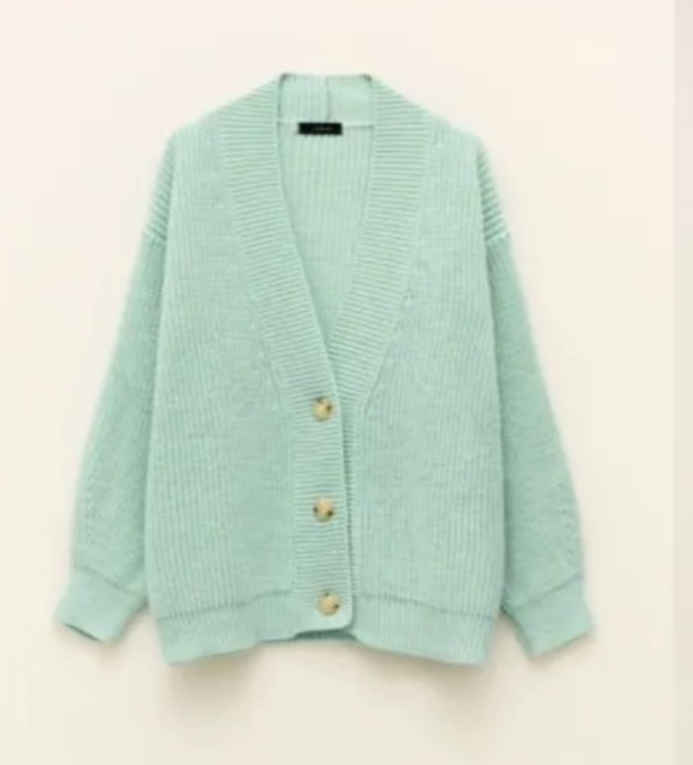 Cardigan Lumina in tg unica, color Tiffany, 75% ACRYLIC+10% WOOL+10% VISCOSE+5% ALPACA.