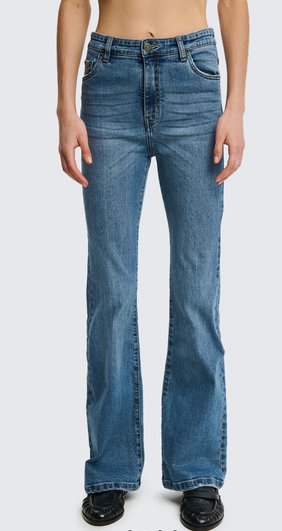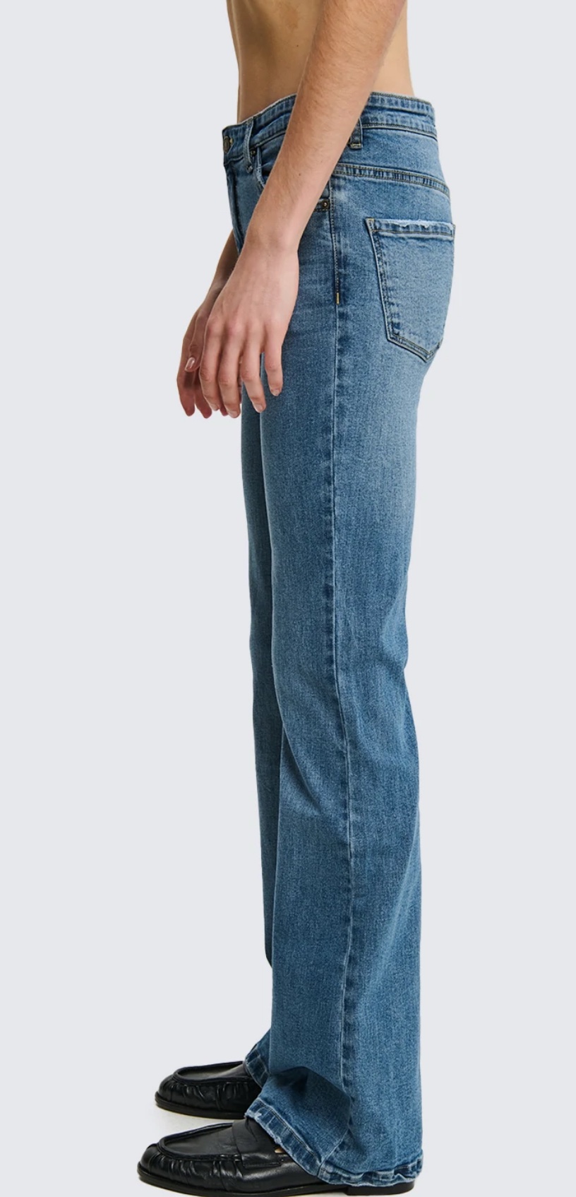 Jeans modello a zampa in misto cotone completamente elasticizzato.