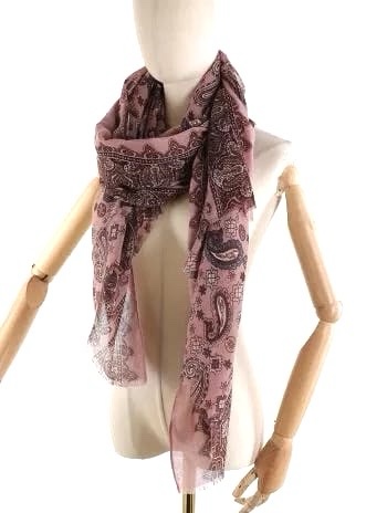 Pashmina in fantasia jacquard, dai toni del bordeaux, rosa, blu.