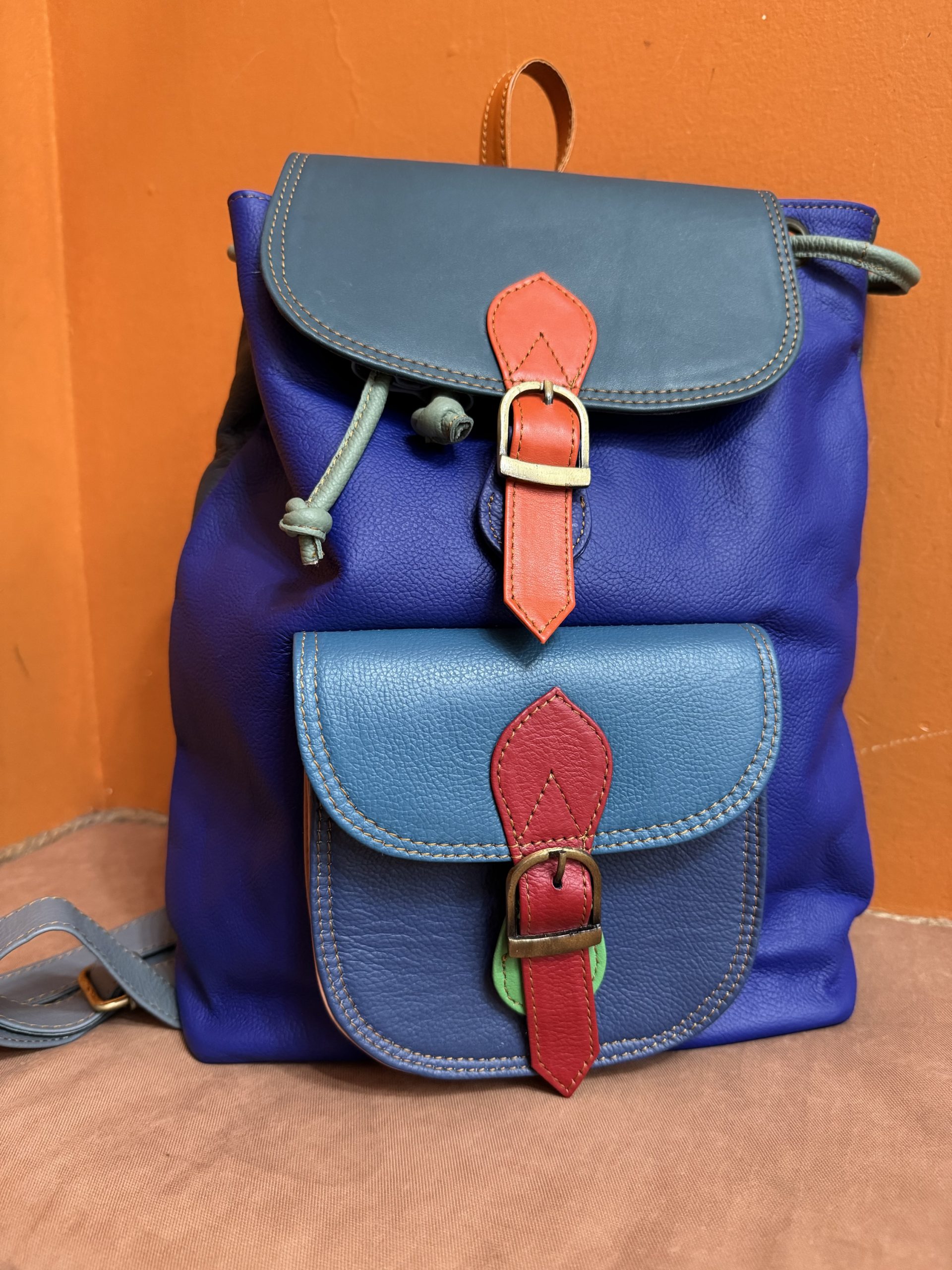 Zaino artigianale in vera pelle, con tasca esterna e bretelle regolabili